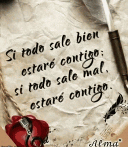 A heartfelt Spanish message on crumpled paper, 'If everything goes well, I will be with you; if everything goes wrong, I will be with you.'