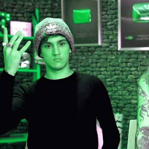 Christian Figueiredo, wearing a beanie and black shirt, changes colors like a sad statue.