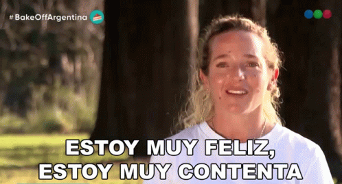 Silvina from Bake Off Argentina expresses her joy, saying 'Estoy muy feliz, estoy muy contenta' during the show.