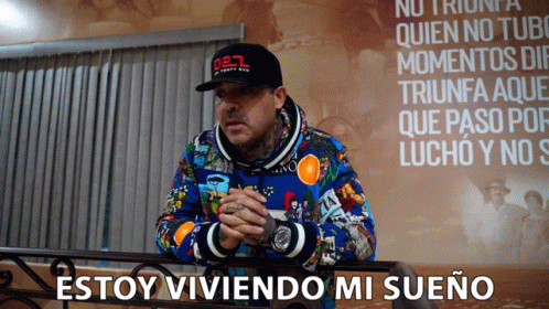 Angel Del Villar shares a powerful message, stating 'I am living my dream' while standing in front of motivational text.