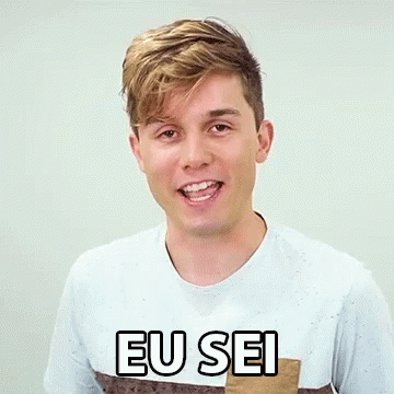 Gato Galactico, a man in a white shirt, smiles and says 'Eu Sei' (I Know).