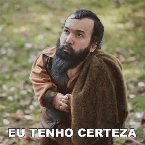 Gigante Léo from Porta Dos Fundos, expressing 'Eu Tenho Certeza' (I Am Sure) with a thoughtful look.