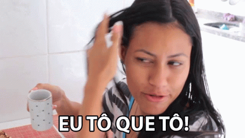 Caroline Lima expresses 'Eu To Que To!' while wiping her face with a napkin, showing confidence.