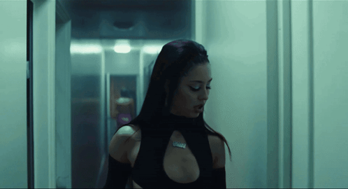 a woman in a black dress has a name tag on her neck that says ' sally '