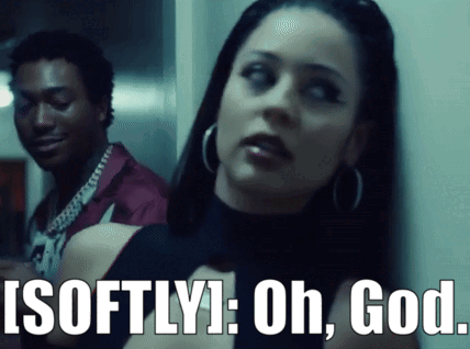 a man and a woman are standing next to each other and the woman is saying " softly "