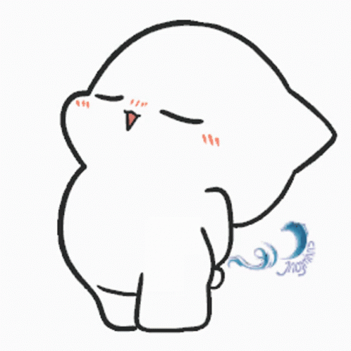 An animated drawing of Khatuna, a cat with closed eyes and a hand on its face, showing a euphoric smile.