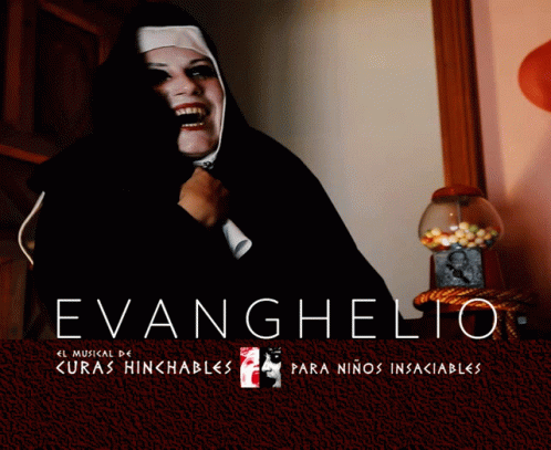 Poster for Evanghelio Curashinchables featuring a nun with a gumball machine, hinting at the 'Evil Nun' theme.