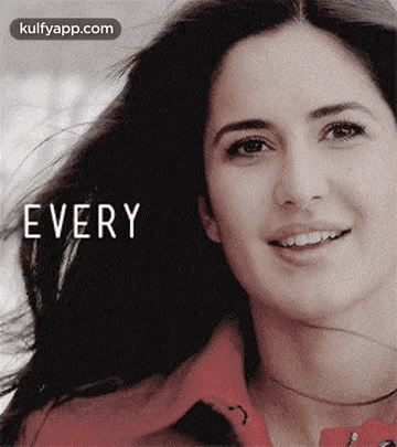 Katrina Kaif's captivating smile with 'EVERY' text, a moment from a Bollywood film.