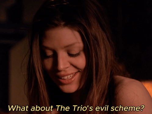 Tara Maclay (Amber Benson) questions 'What about The Trio's evil scheme?' in a scene from Buffy the Vampire Slayer.