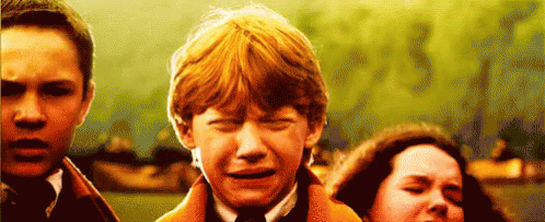 Ron Weasley (Rupert Grint) shows a strong disgusted reaction in this Harry Potter scene.
