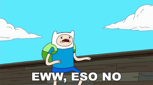 Finn from Adventure Time reacts with disgust, exclaiming 'Eww, Eso No' in this animated clip.