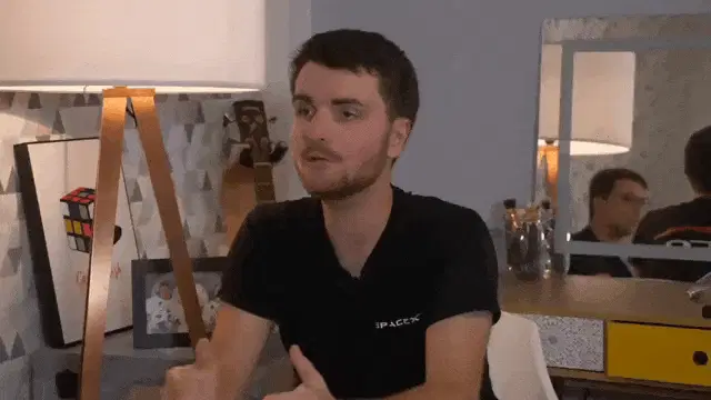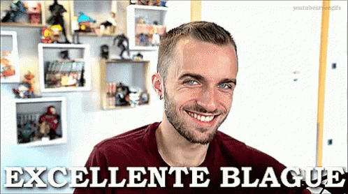 Squeezie smiles at the camera with the text 'Excellente Blague' displayed on screen.