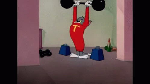 Tom And Jerry lifting weights and exercising, getting ready for a challenge.