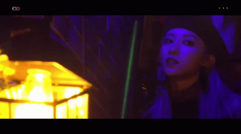 EXID members Solji, Hani, Hyelin, Jeonghwa, and LE pose in a dark, neon-lit club setting with vibrant colors.