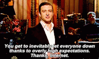Justin Timberlake on high expectations and letting everyone down, thanking the internet.
