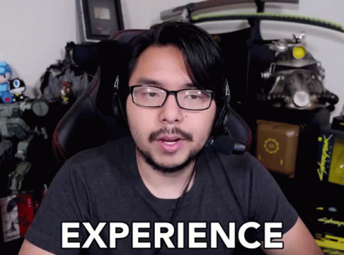 Man in glasses and headset speaking, with the word 'EXPERIENCE' displayed on screen.