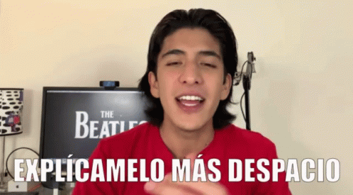 Andres Neshudo, in a red shirt, asks to 'Explain it to me slower' with a confused and desperate expression.