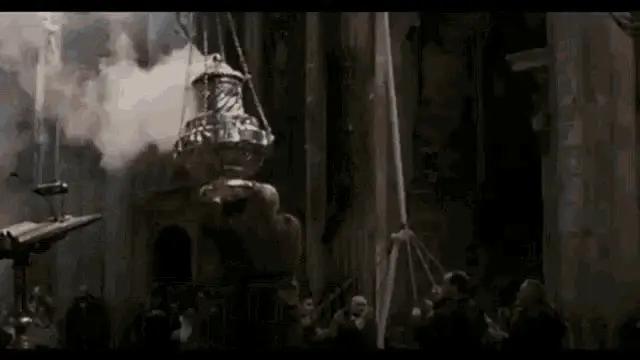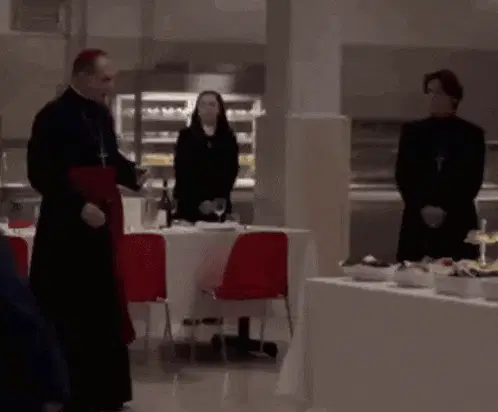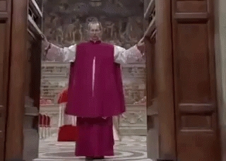 Monsignor Guido Marini closes the doors during the Extraomnes ritual, holding a thurible.