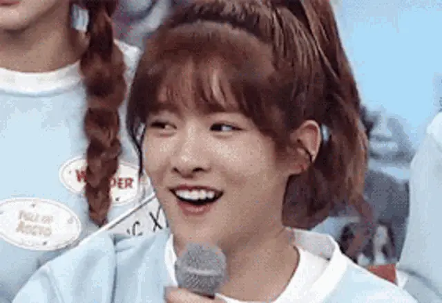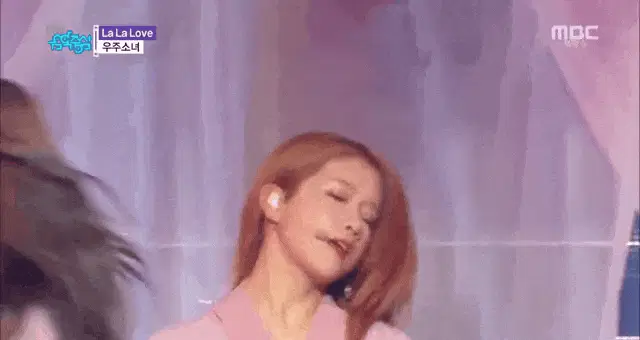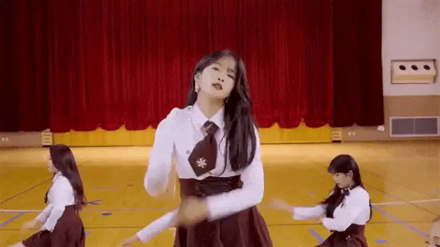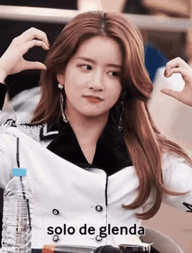Exy Wjsn making heart hands, featuring Glenda, in a solo performance moment.