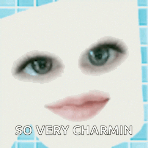 A Charmin toilet paper roll character with an eye roll and lips, featuring the text 'So Very Charmin'.