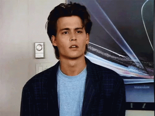 Young Johnny Depp with attentive and curious expression, highlighting his expressive eyebrows.
