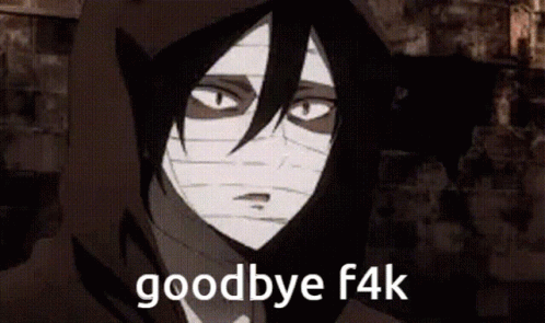 Zack Foster from Angels Of Death in a black and white clip with the text 'goodbye f4k'.