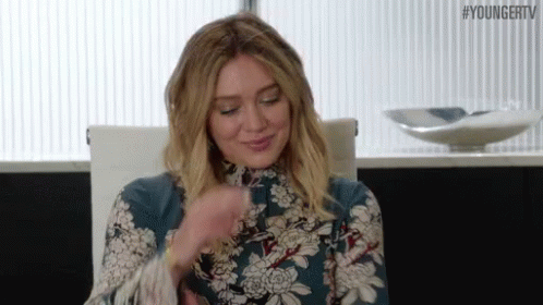Hilary Duff facepalms and then smiles, a moment from the television series Younger TV.