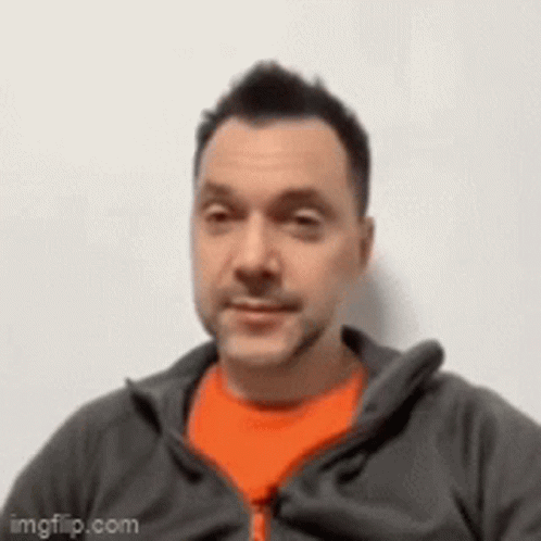 Arestovich performs a classic facepalm, covering his face with his hand in a moment of exasperation.