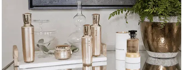 A woman applies and massages a facial scrub, part of her skincare routine, with a Crowned Ladies logo visible.