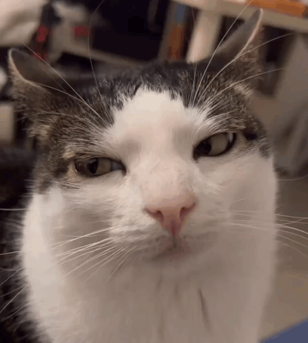 Fadding Cat with a serious, intense stare, looking directly at the camera.