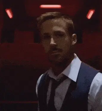 Ryan Gosling adjusting his sunglasses while wearing a suit in what appears to be a store.