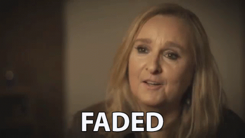 Melissa Etheridge in a close-up shot, with the word 'FADED' overlaid on the screen, reflecting a subtle expression.