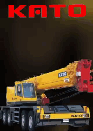 Fadira Utama posing with a large yellow KATO crane truck, featuring the KATO logo and a 'You're Welcome!' message.