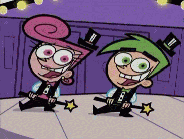 Cosmo and Wanda from Fairy God Parents dancing in their signature outfits.