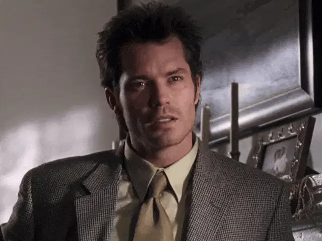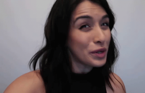 Jazmine Garcia makes a fake smile and a funny face in a close-up, then looks up with a grimace.