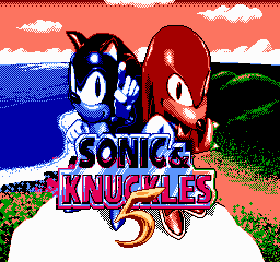 Title screen for the retro video game Famicom Sonic & Knuckles 5, featuring Sonic and Knuckles.