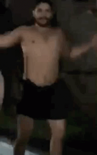Familia Mdf Ze Maradona dancing shirtless in a pool with energetic moves.