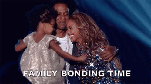 Beyoncé, Jay-Z, and Blue Ivy Carter share a heartwarming family hug on stage, celebrating a special moment.