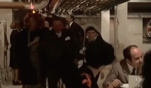 Ugo Fantozzi and friends celebrating various occasions with 'Auguri!' in a lively gathering.