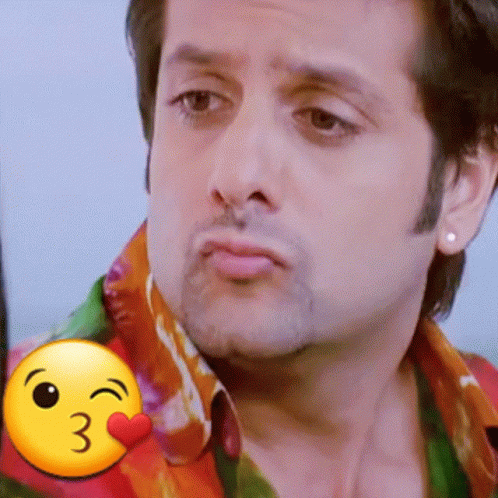 Fardeen Khan winks and blows a kiss, with a playful emoji overlay.