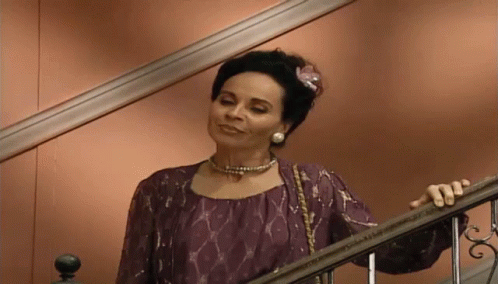 Doña Magda (Macaria) from Vecinos looks annoyed and rolls her eyes while standing on stairs.