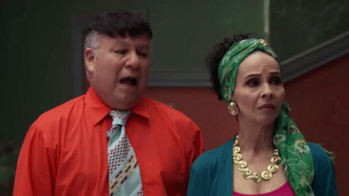 Arturo and Doña Magda from Vecinos show annoyance, rolling their eyes with exasperated expressions.