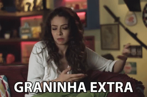 A woman discusses 'Graninha Extra' (Little Extra Money) while sitting on a couch.