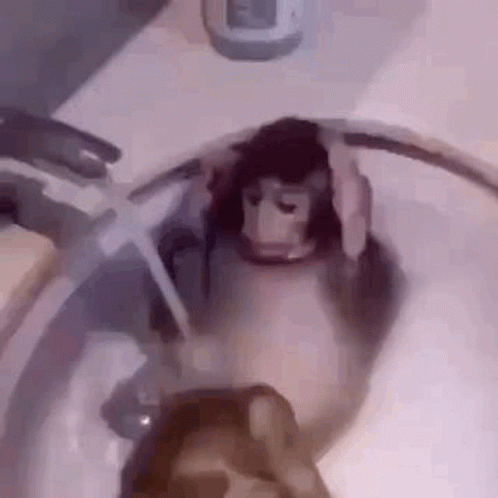 Fatuna Sammono, a small monkey, enjoys a relaxing bath in a sink with running water.