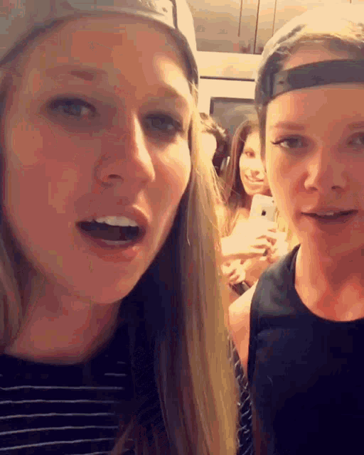Two female bodybuilders, one wearing a hat, proudly flexing their impressive biceps.