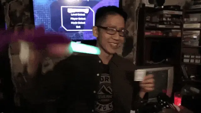 A vibrant crowd at a rave party, waving light sticks and enjoying the music under flashing stage lights.