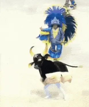 Feagri Lacrou skillfully rides a mechanical bull at an indoor event with purple lighting.
