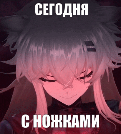 Lappland from Arknights with a menacing smile, accompanied by the Russian meme "Сегодня с ножками" (Today with Feet).
