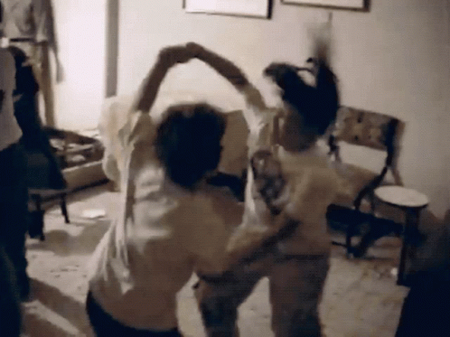 Feid Ferxxo and siblings doing a crazy dance indoors, full of energy and fun.