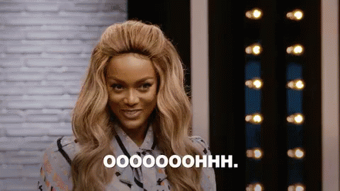 Tyra Banks delivers a feisty and mischievous "OOOOOOOHHH" with a knowing smile, reflecting her iconic personality.